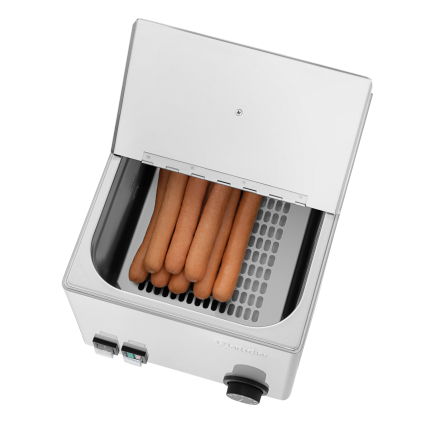 Des saucisses à hot dog chaudes et juteuses à tout moment. Selon le principe du bain-marie, l’appareil à hot-dogs maintient les saucisses fraîches et savoureuses pendant longtemps. Le cylindre en verre invite spontanément à savourer un hot-dog en laissant la vue libre sur les saucisses.