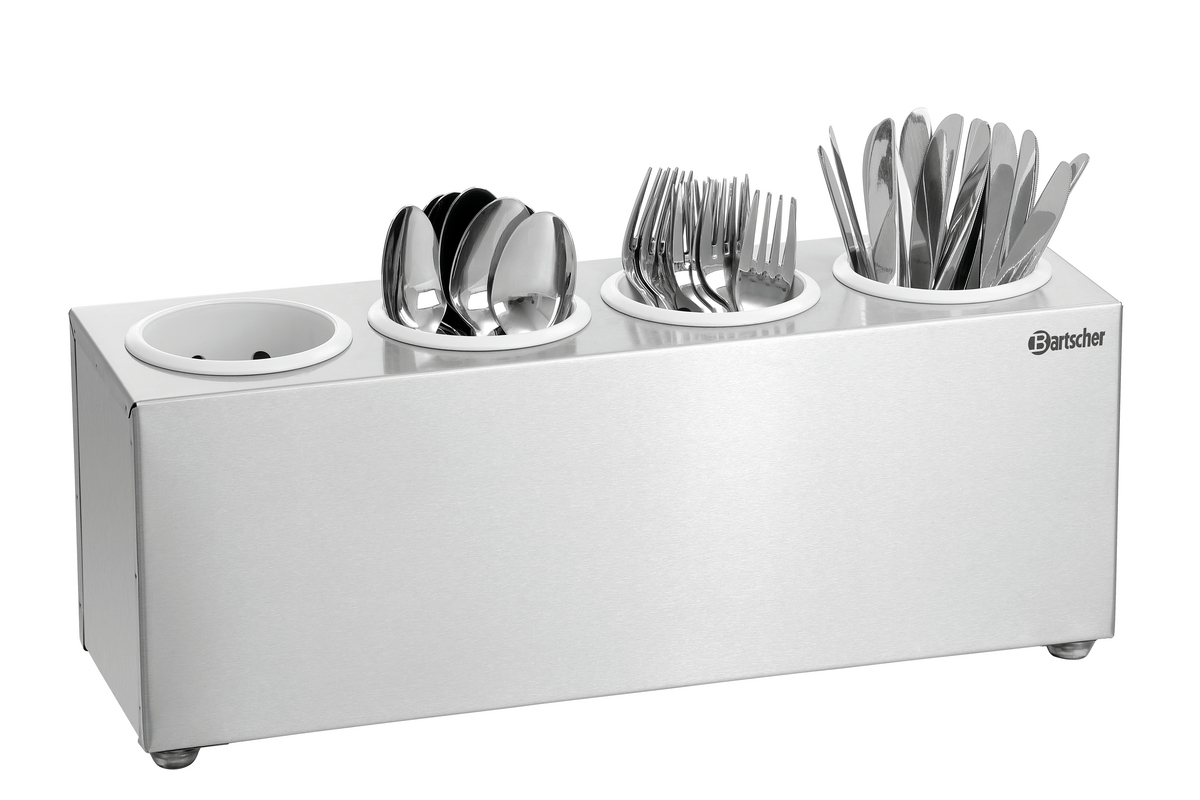 Dans les cantines, pour les buffets et dans le domaine du self-service, le bac à couverts est parfaitement à sa place. La nature du matériau ainsi que la possibilité de retirer les égouttoirs à couverts disponibles en option offrent les meilleures conditions possibles pour un nettoyage parfaitement hygiénique.