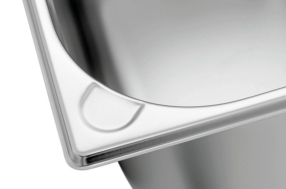 Récipient GN conforme à la norme EN 631 en acier inoxydable au nickel-chrome avec surface satinée