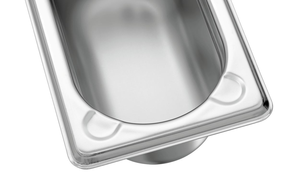Récipient GN conforme à la norme EN 631 en acier inoxydable au nickel-chrome avec surface satinée
