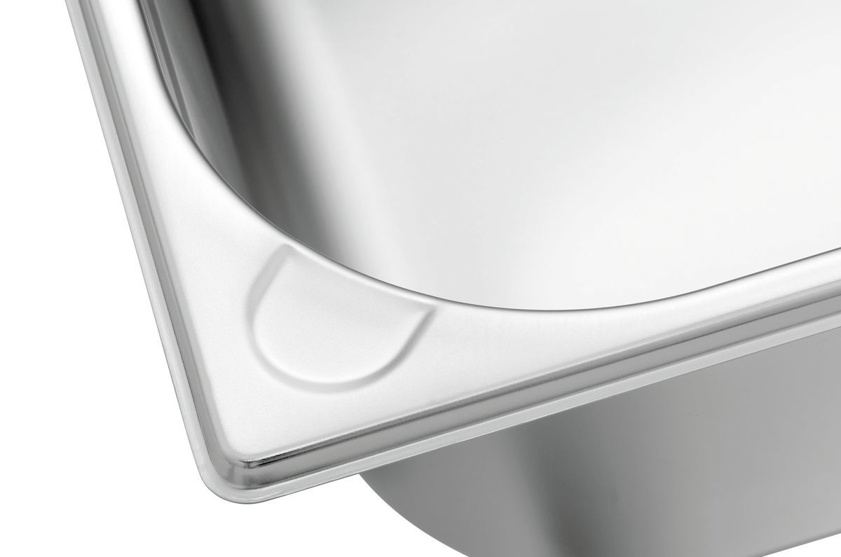 Récipient GN conforme à la norme EN 631 en acier inoxydable au nickel-chrome avec surface satinée