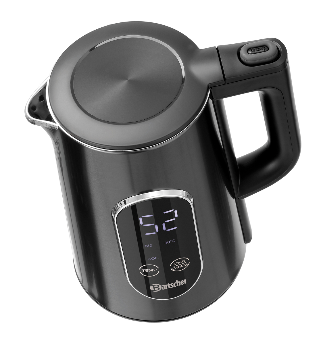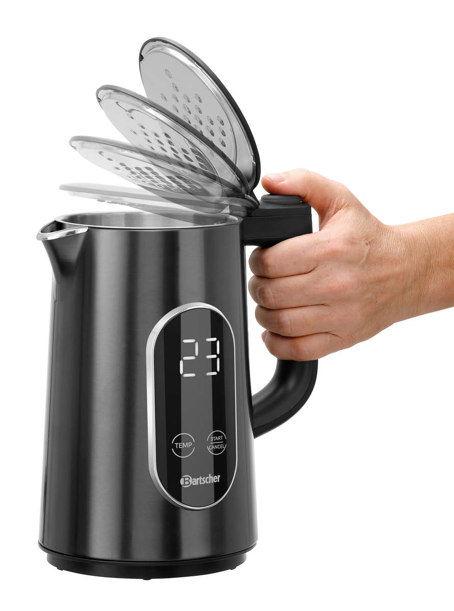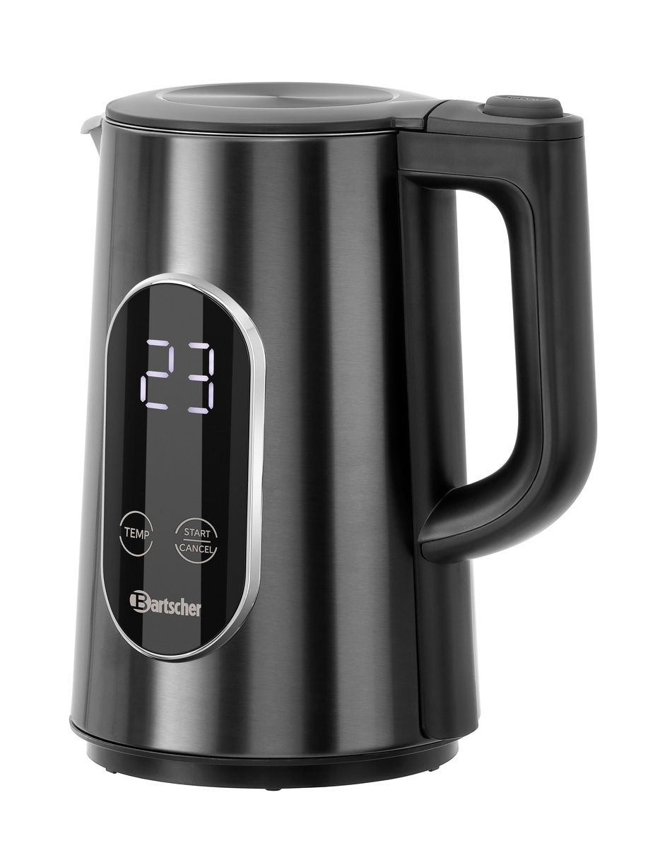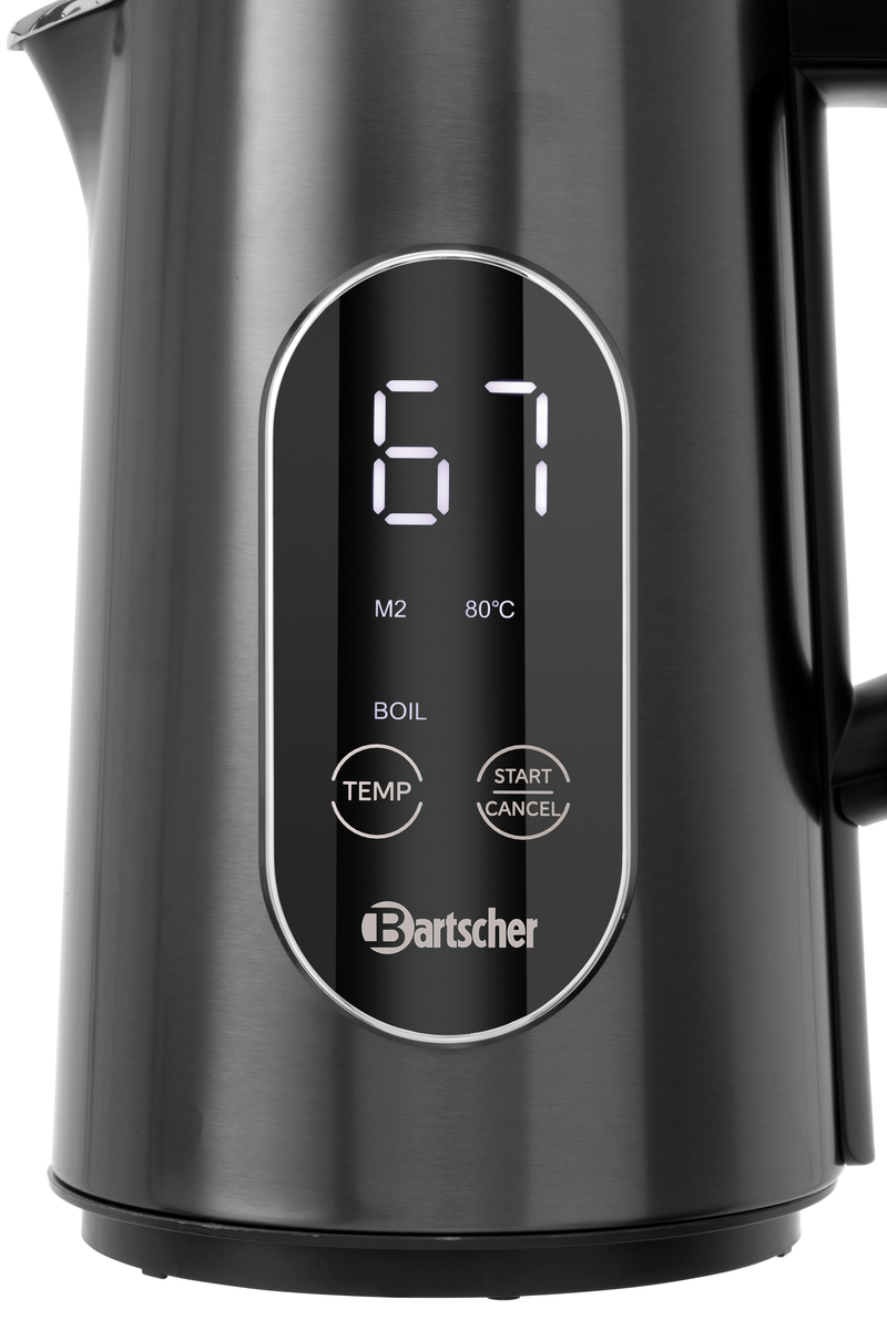 La bouilloire électrique performante avec grand écran et commandes tactiles séduit par son aspect élégant. La fonction de maintien au chaud maintient l’eau à température de manière fiable pendant une heure.