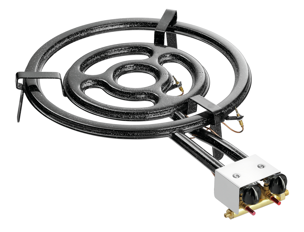 Le brûleur à paëlla est une alternative flexible et mobile pour la préparation de repas poêlés. Le cercle du brûleur est équipé d’une veilleuse et de deux boutons rotatifs qui permettent un réglage en continu. Ces boutons permettent de régler individuellement la taille des flammes.