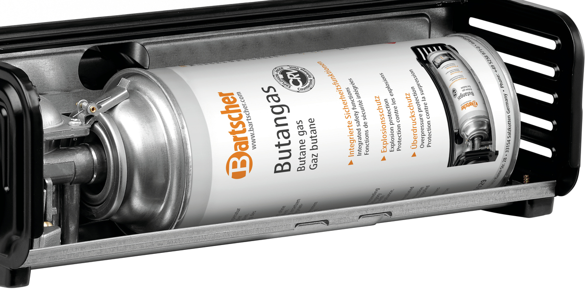 La cartouche de gaz compacte et rapidement prête à l’emploi est conçue pour le réchaud à gaz Bartscher 1K220-T.