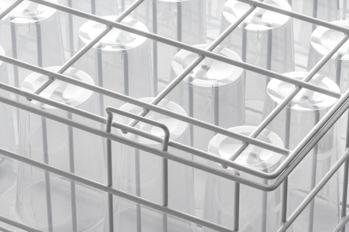 Le panier à gobelet réutilisable permet de nettoyer les gobelets et verres au lave-vaisselle facilement et rapidement sans glisser. Les gobelets enfichés sont maintenus en place en plaçant et en fermant le couvercle.