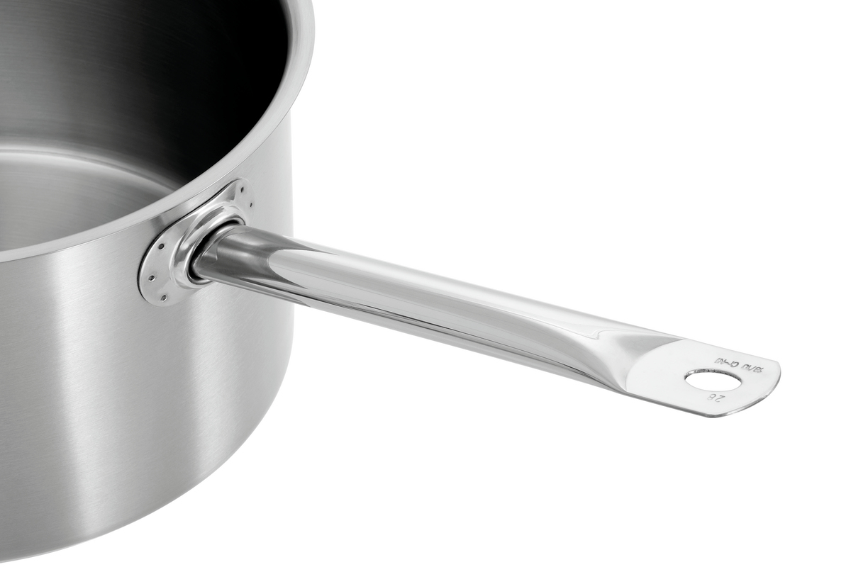 Cette marmite en acier inoxydable est un ustensile polyvalent qui convient à toutes les cuisinières. Avec sa longue poignée fixe, elle garantit une manipulation optimale dans la cuisine.