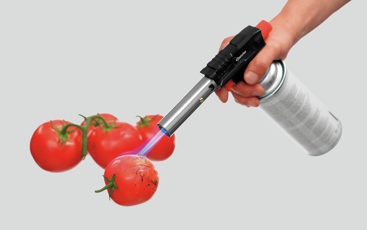 Un chalumeau classique : pour caraméliser des desserts comme la crème brûlée. Mais cet ustensile pratique permet également de faire fondre du fromage, de dorer des plats ou de monder les tomates et les poivrons.