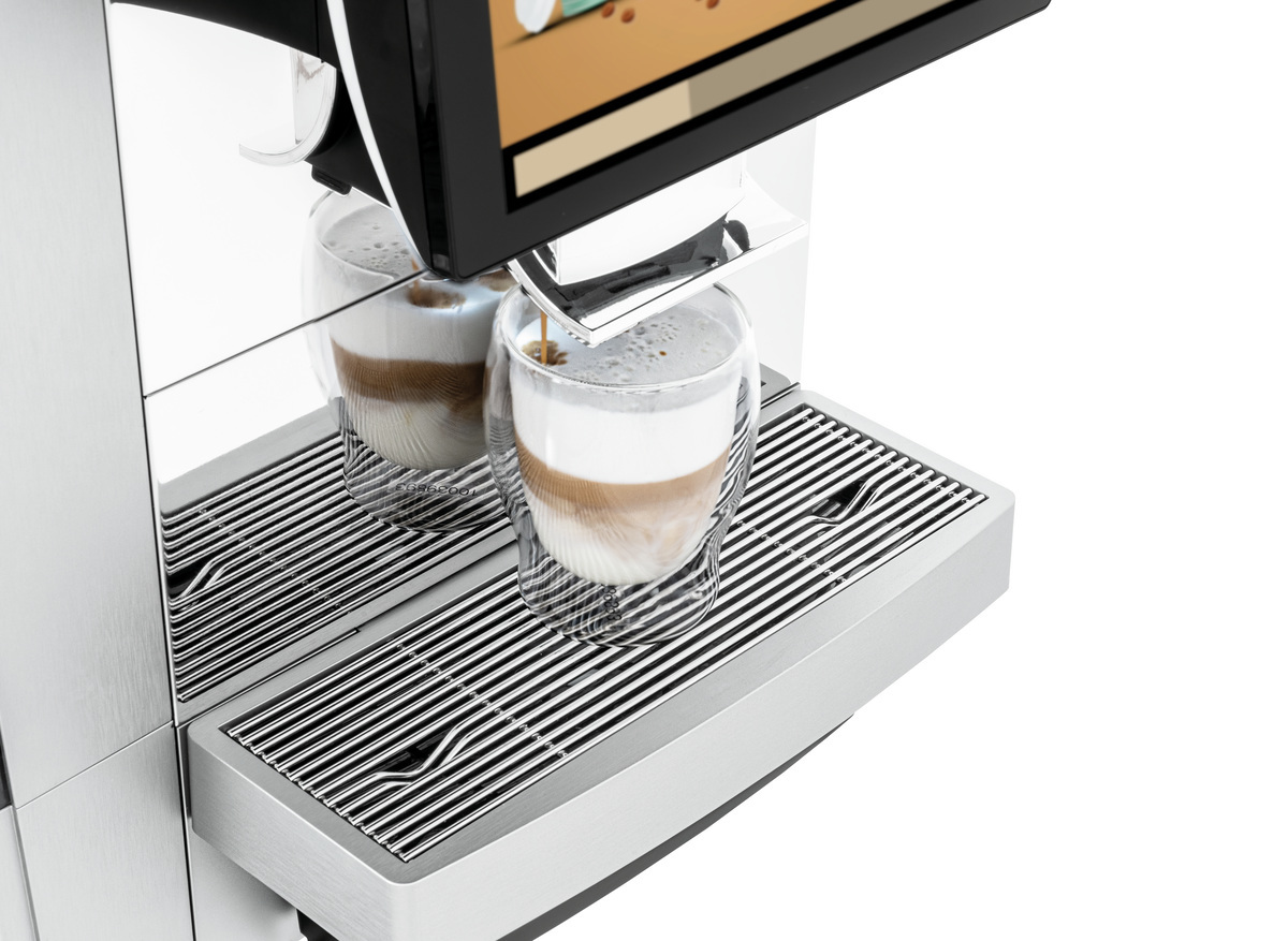 Café crème, Espresso, Latte Macchiatto et plus de 30 autres spécialités de café – le KV1 Deluxe permet cela. Les éléments chauffants puissants et le capteur de température du lait assurent la température idéale de la boisson. Avec l’ajout simultané d’eau et de café, le temps de préparation est réduit notamment pour la préparation d’un Americano. L’équipement du Deluxe est complété par l’écran tactile particulièrement intuitif – Le plaisir absolu du café par une simple pression sur un bouton.