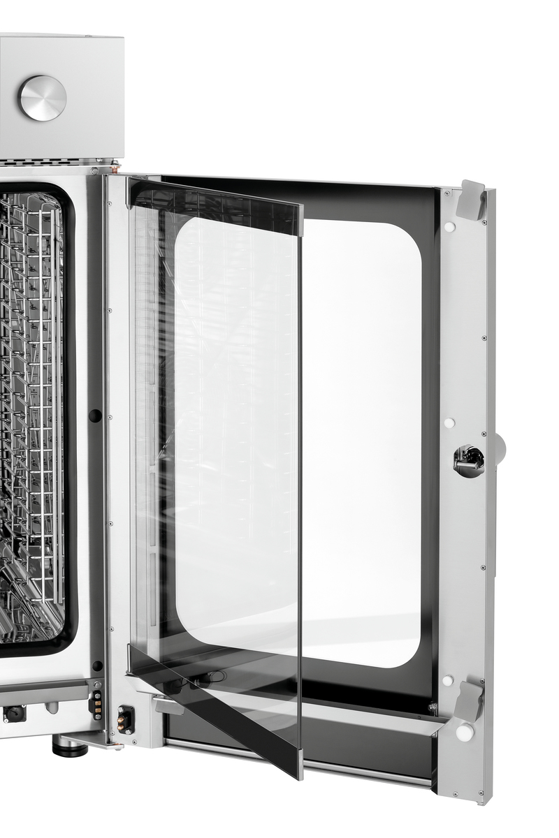 Grâce aux glissières en longueur, le Silversteam-K 10110DRS est particulièrement compact et s’intègre donc bien dans les petites cuisines. La commande intuitive et numérique avec fonction Rack Control et la bonne circulation de l’air permettent de cuire à la vapeur ou de cuire normalement des aliments dans des récipients GN au format 1/1 GN. Avec le système de nettoyage intégré, le compartiment de cuisson est toujours parfaitement propre.