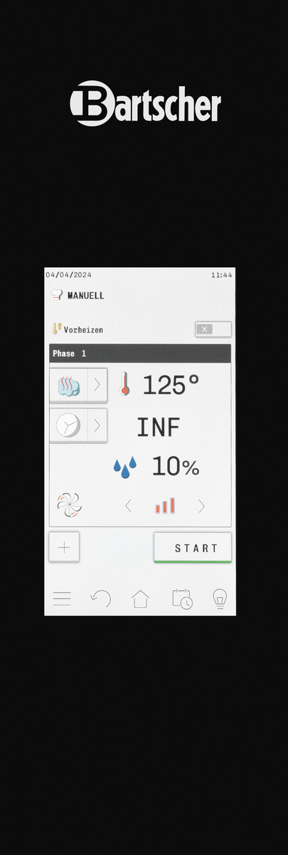 Le partenaire idéal dans toutes les cuisines : fours mixtes Bartscher avec 5 inserts au format 2/3 GN. Que ce soit avec ou sans sonde de température à coeur – la commande électronique permet un contrôle adapté aux besoins de tous les processus de cuisson. Avec la fonction Rack-Control, divers aliments peuvent être préparés à différentes heures. Heureusement que le Silversteam2 permet de garder un oeil sur tout.