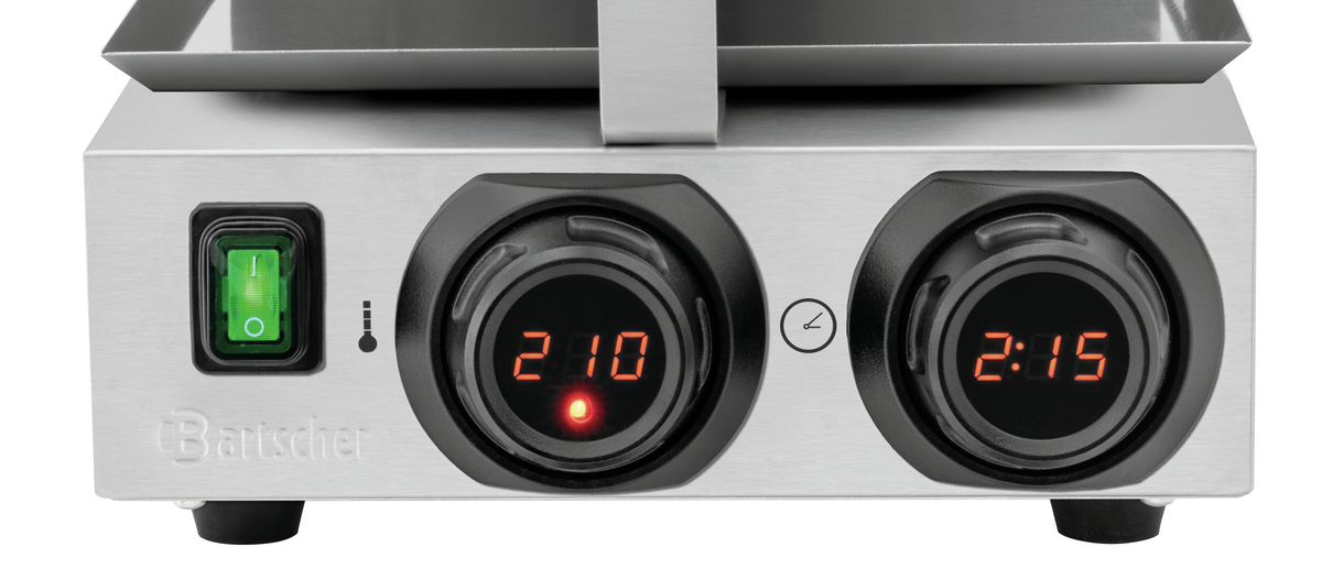 Avec le gaufrier MDI 1BWR 1750, les gaufres belges seront parfaitement réussies. Grâce à la commande MDI Bartscher, le gaufrier puissant avec des plaques de cuisson revêtues permet de préparer des gaufres parfaites. Avec la commande à bouton intuitive avec affichage digital, minuterie et signal sonore, on peut même surmonter les heures de pointe en un tour de main et dans une qualité homogène.