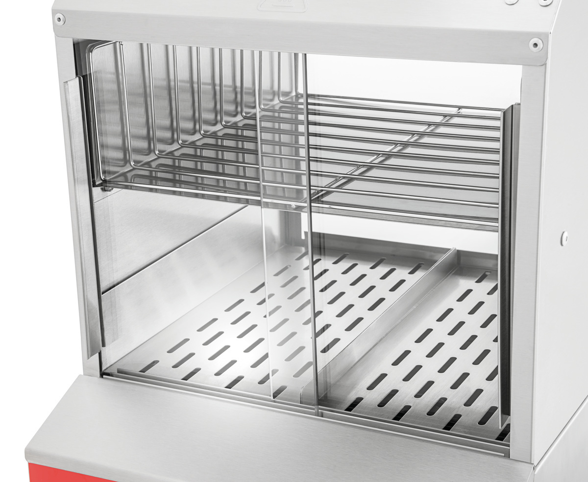 Le cuiseur vapeur à hot dog chauffe et maintient au chaud jusqu’à 100 saucisses à hot dog et jusqu’à 15 pains à hot dog. La façade vitrée du côté du client et le design attrayant invitent les plus jeunes et les plus âgés à savourer ce délicieux plat typiquement américain.