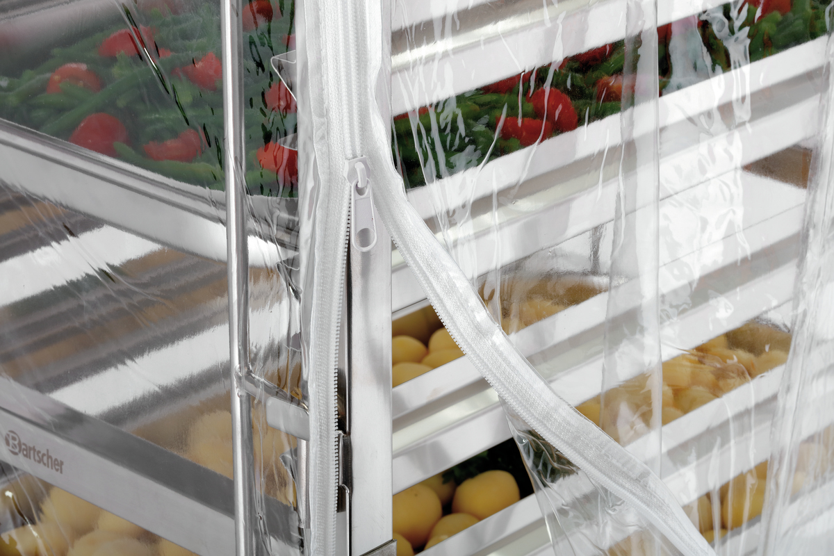 La housse de protection transparente pour le chariot Gastronorm AGN1800-1/1 protège contre la poussière et les impuretés durant le transport et le stockage – y compris dans les chambres froides. Les fermetures éclair permettent de remplir confortablement le chariot sans avoir à enlever la housse.