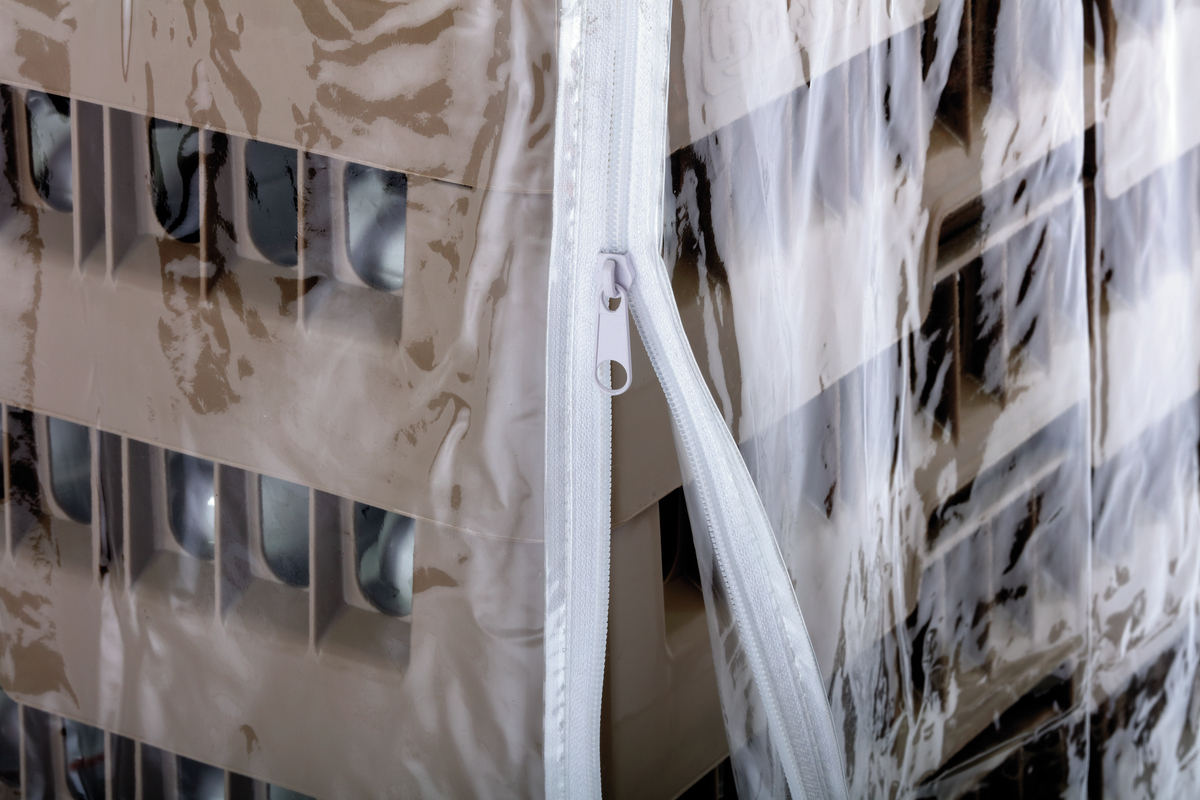 La housse de protection transparente pour le chariot à vaisselle TGS100 protège contre la poussière et les impuretés durant le transport et le stockage – y compris dans les chambres froides.