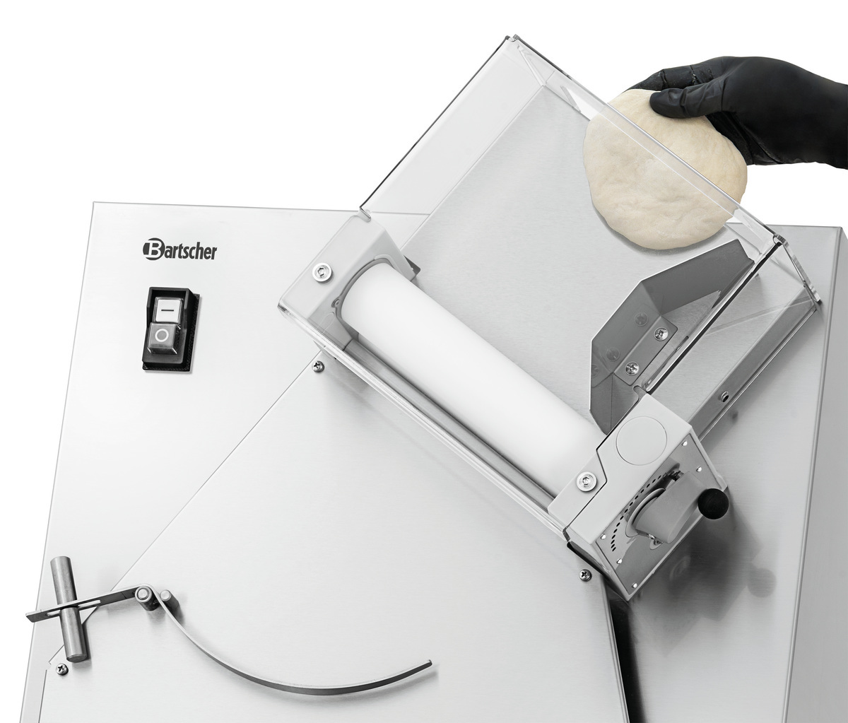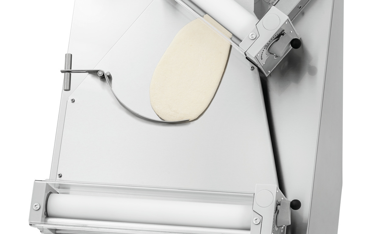 Pour un résultat parfait avec un effort réduit et en un minimum de temps – avec le laminoir, les pâtes d’un diamètre allant jusqu’à 400 mm sont réussies en un tour de main. Il est possible de réaliser très facilement des produits diversifiés comme de la pâte à tartes flambées, de la pâte à pizza ou de la pâte à pain pita grâce au réglage de l’épaisseur de pâte des deux rouleaux à pâte.