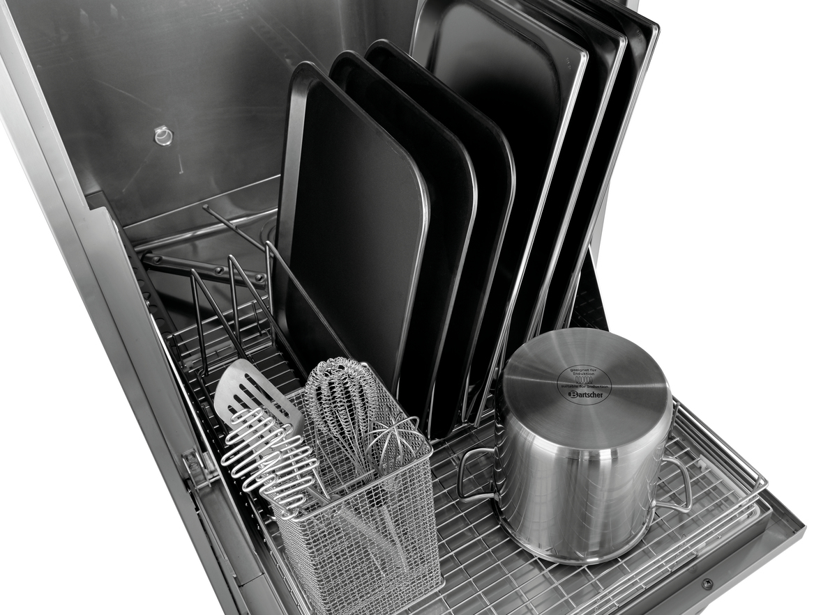 Avec le panier universel et le porte-plateaux fournis, le TS 665-1 R convient parfaitement pour le nettoyage d’ustensiles volumineux. Il assure des résultats de rinçage parfaits pour les casseroles, les poêles, les plateaux, les bols et les saladiers.