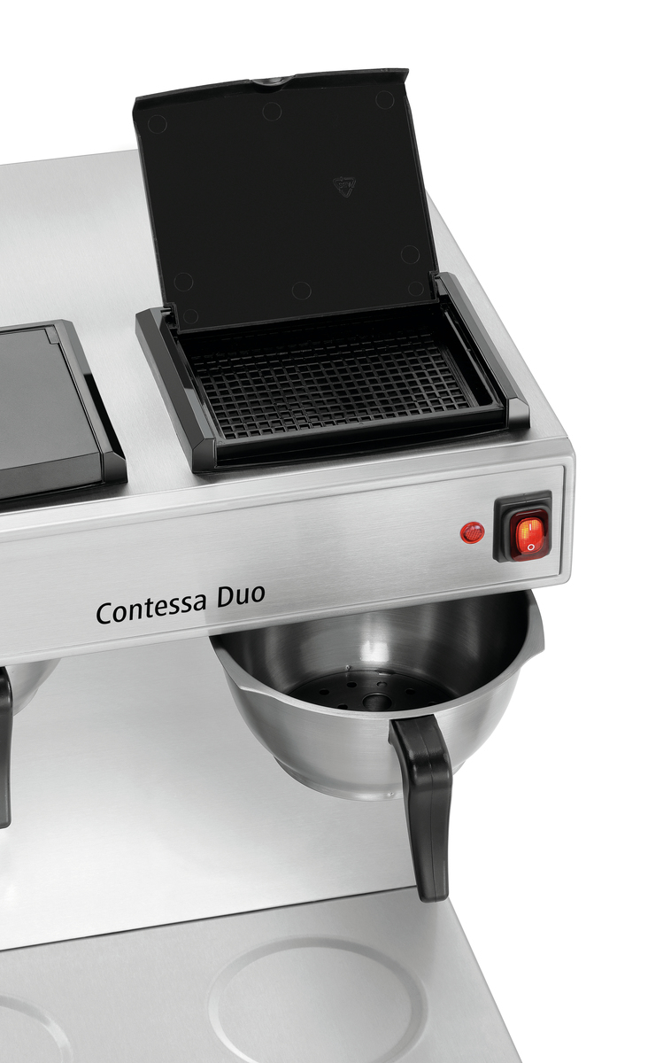 La machine à café parfaite pour la distribution de café-filtre sur les buffets, dans le domaine du catering et lors d’évènements. La machine à café Contessa Duo permet de préparer jusqu’à 13 tasses par zone chauffante directement dans le thermos. Les résistances électriques optimisées en acier inoxydable assurent une meilleure transmission de la chaleur.