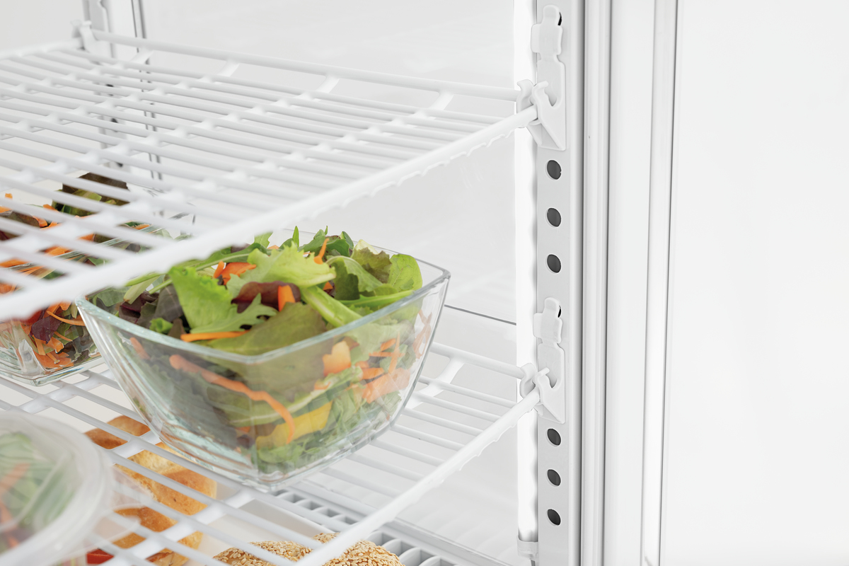 La mini vitrine réfrigérée à portes bombées à l’avant et à l’arrière est idéale pour les comptoirs. Grâce aux grilles à hauteur réglable, la vitrine réfrigérée blanche offre un équipement flexible sur 4 niveaux avec une capacité de 75 Litres. Avec l’éclairage LED, les aliments refroidis sont présentés de façon optimale et parfaitement mis en valeur.
