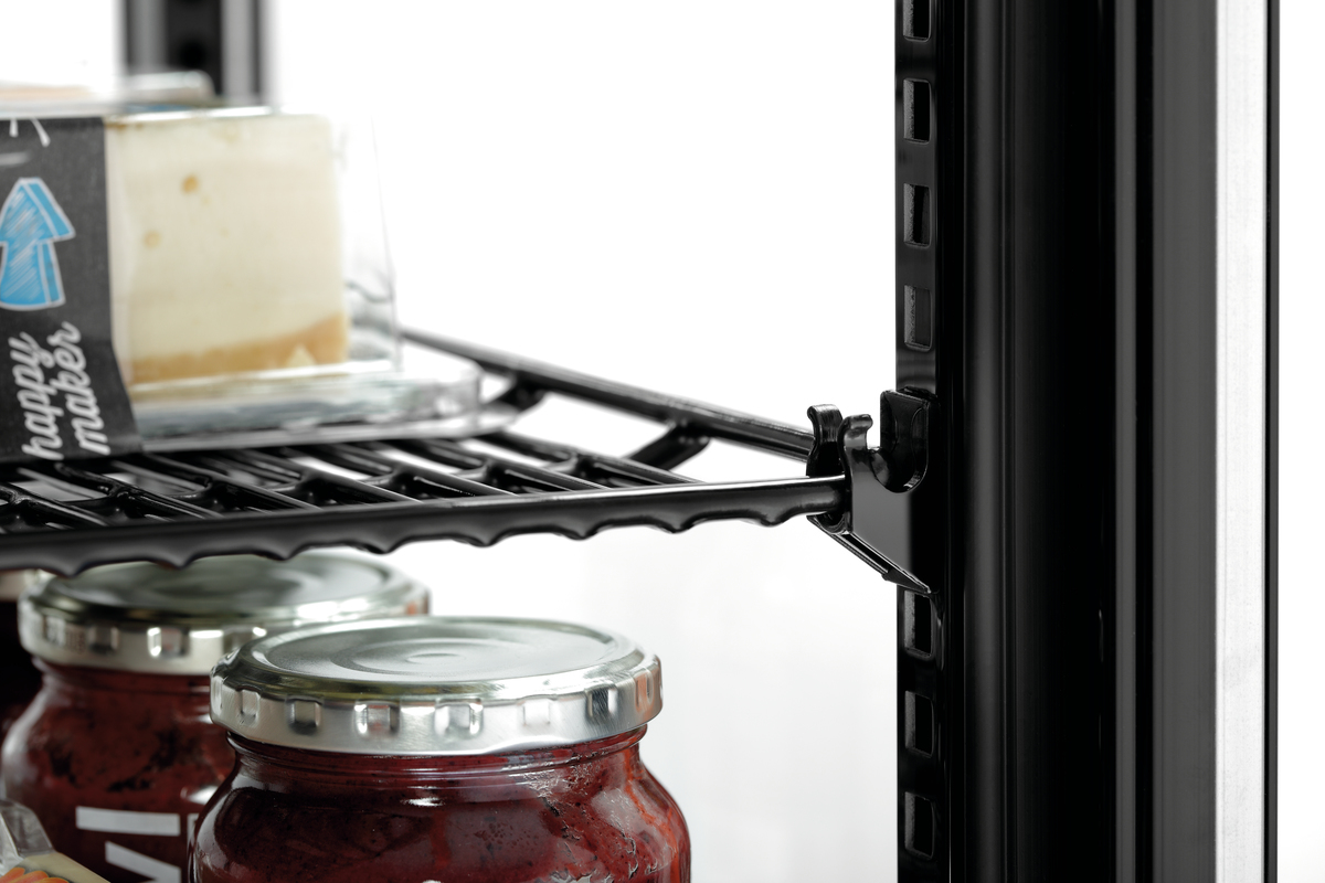La vitrine réfrigérée compacte en version noire avec une contenance de 98 litres se distingue par son réfrigérant écologique et par sa durabilité et sa puissance.