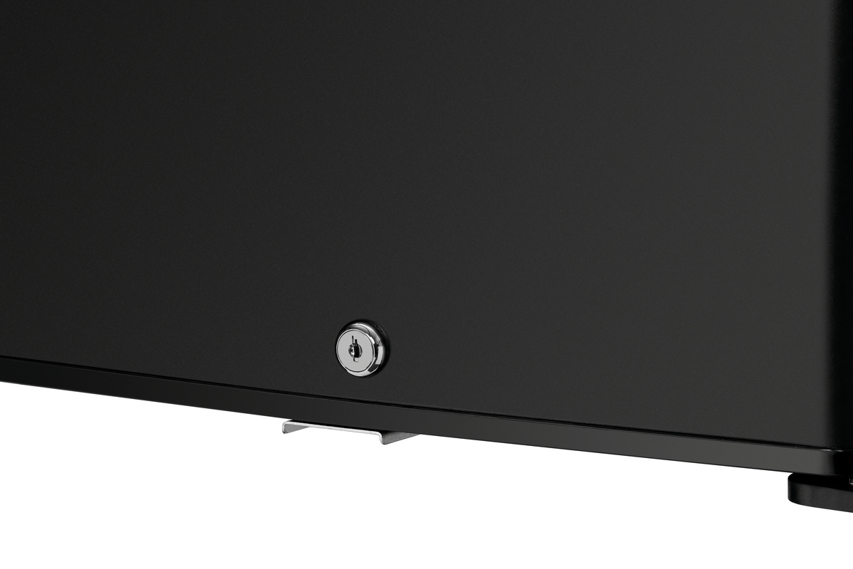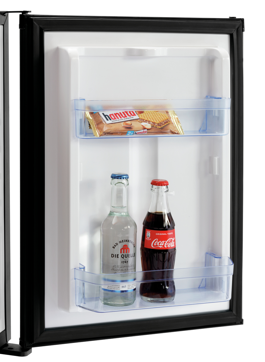 Boissons fraîches, snacks ou fruits – ce minibar encastrable avec éclairage, réglage en continu de la température et compartiments de porte supplémentaires offre suffisamment de place pour gâter les clients des hôtels.