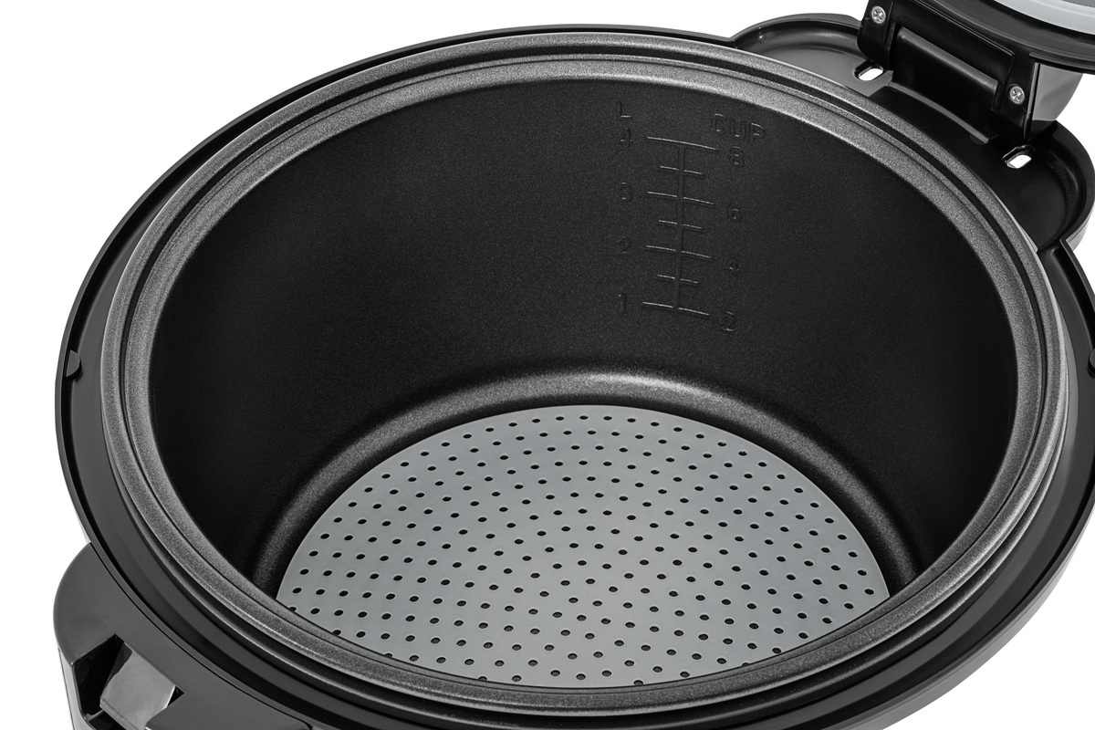 Plus jamais de riz collant ou brûlé – le tapis à riz en silicone évite cela dans le cuiseur à riz correspondant de 6 L et garantit un nettoyage facile et rapide du bac.