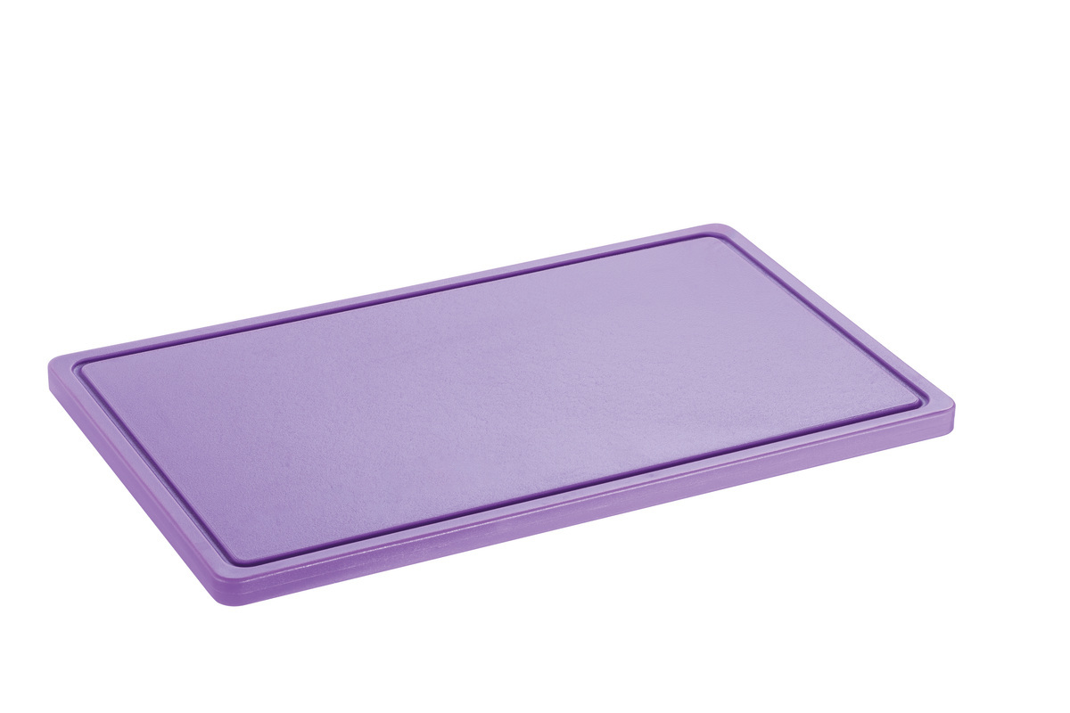 L’hygiène au coeur de l’attention avec la série de planches à découper PRO dans un format de 53 x 32 cm – Planches à découper de différentes couleurs pour les différents groupes d’aliments. La planche à découper conforme HACCP de couleur mauve est conçu pour la découpe d’aliments sans allergènes.