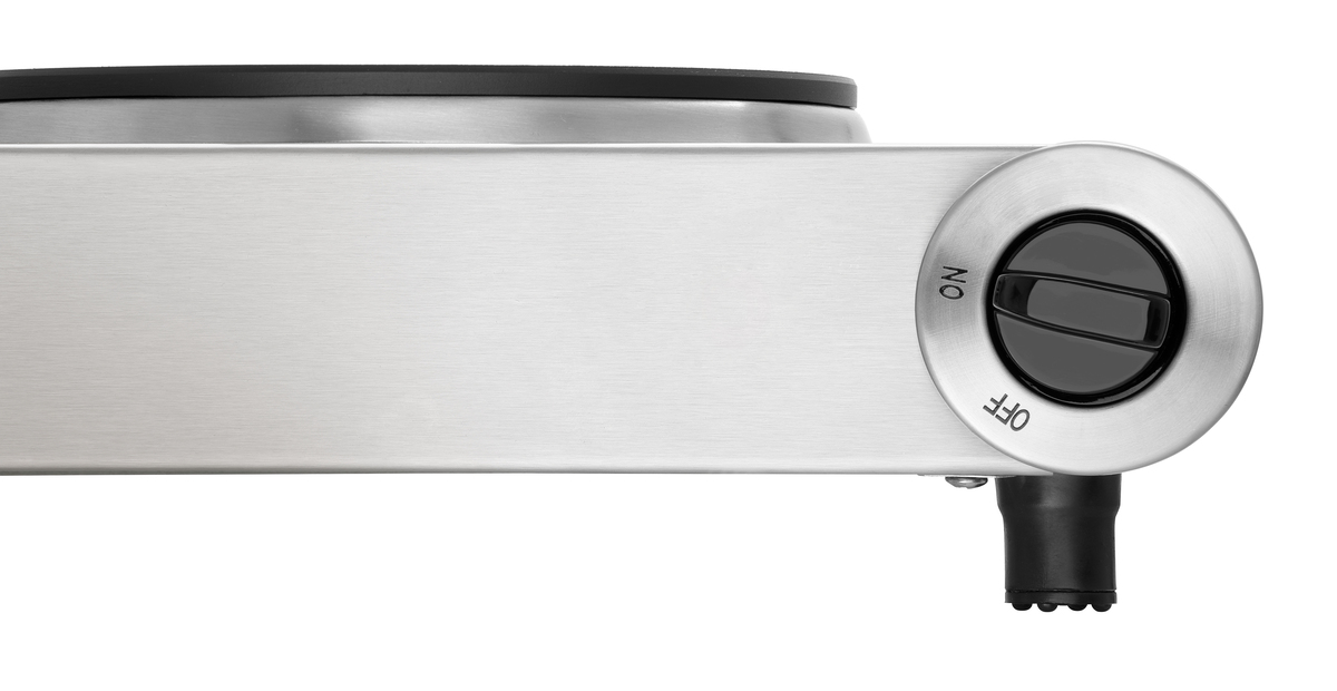Le réchaud électrique à usage intuitif dispose de deux zones de cuisson adjacentes. Avec les deux boutons de réglage rotatifs, la température respective peut être réglée en continu.