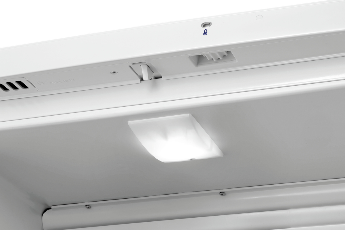 Avec son design minimaliste, ce réfrigérateur à circulation d’air s’intègre parfaitement dans toutes les cuisines et toutes les réserves. Les 5 tablettes à hauteur réglable permettent de conserver les aliments (emballés ou dans des récipients) au frais.