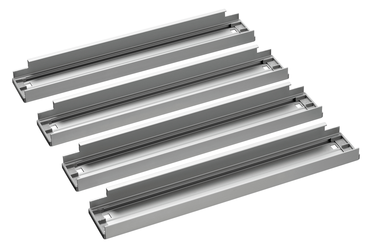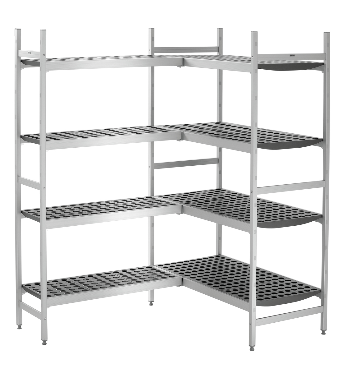 Les barres d’assemblage permettent d’assembler des étagères de 360 mm de profondeur avec d’autres éléments d’étagère pour une installation en coin. L’installation en angle droit permet une extension flexible, organisée et compacte de la surface de stockage dans le domaine de la restauration.