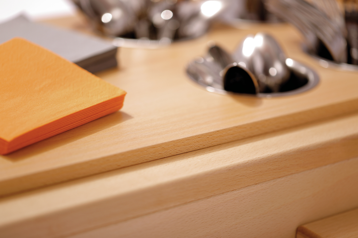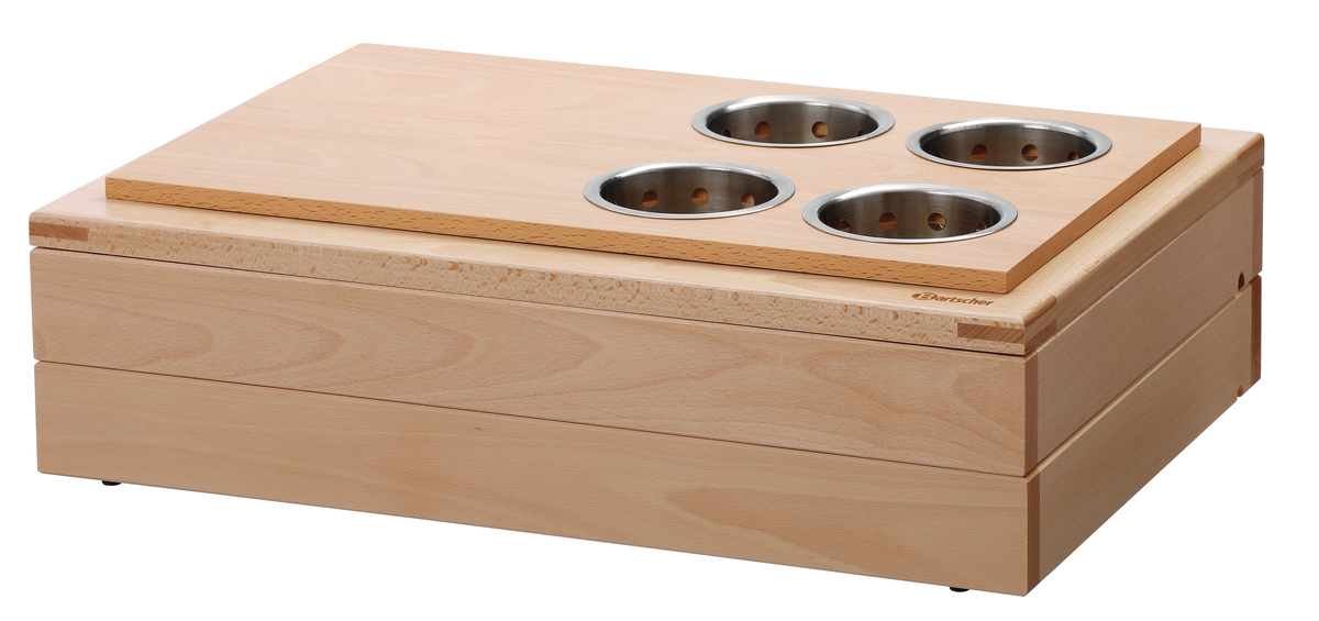 Ce set modulaire au design en bois sobre permet de bien structurer les buffets et de les rendre attrayants. Que ce soit pour le buffet du petit déjeuner, du déjeuner ou du soir, les 4 égouttoirs à couverts peuvent être utilisés pour différents plats, accompagnements ou sauces et peuvent également facilement être remplacés ou réapprovisionnés. La tablette pratique permet par exemple de ranger des serviettes.