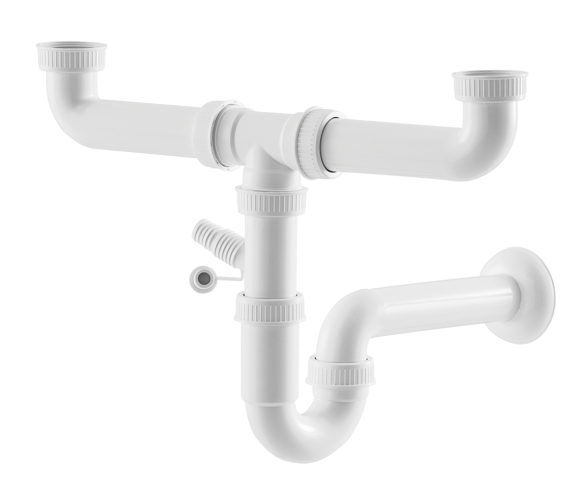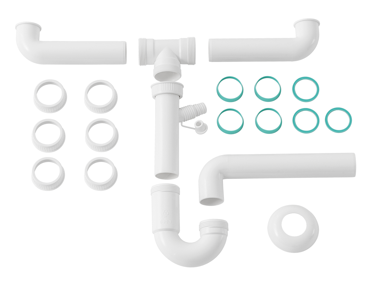Evacuation fiable et sans odeurs pour les eaux de lavage et les eaux usées à l’aide du siphon pour les éviers et stations de rinçage avec deux bacs. Grâce au raccord d’appareil intégré, aucune évacuation supplémentaire n’est nécessaire pour utiliser un lave-vaisselle par exemple.