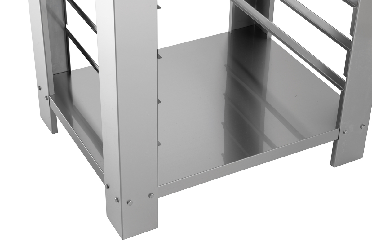 Support pour des conditions de travail optimales : avec le support spécialement conçu pour les fours à air chaud AT400 et AT400-MDI, vous atteignez la hauteur de travail idéale. Les 4 tiroirs au format applicable aux boulangeries 600 x 400 mm offrent suffisamment de place pour les plaques.