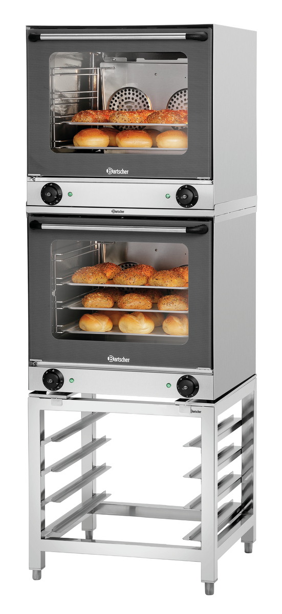 Un four à convection en duopack – ce soubassement ultra-bas est conçu pour empiler 2 fours à convection AT90 ou AT120 avec le cadre d’assemblage AT90-120. 4 glissières permettent le rangement de plaques de cuisson propres, préparées ou utilisées au format 438 x 315 mm.