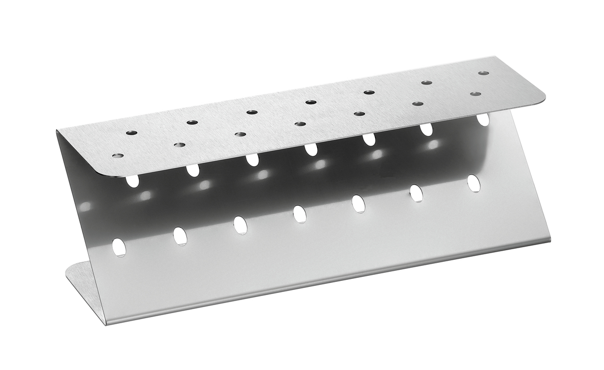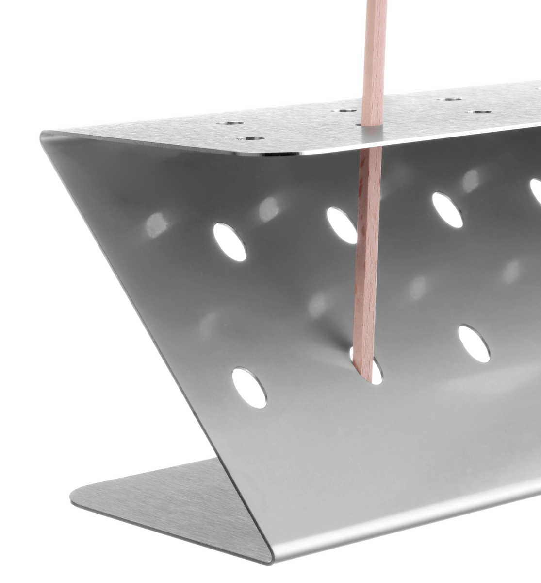 Qu’il s’agisse de gaufres sur bâtonnet, de Cake-Pops ou de barbes à papa, ce beau support en acier inoxydable permet de déposer et de présenter de manière hygiénique jusqu’à 14 bâtonnets.