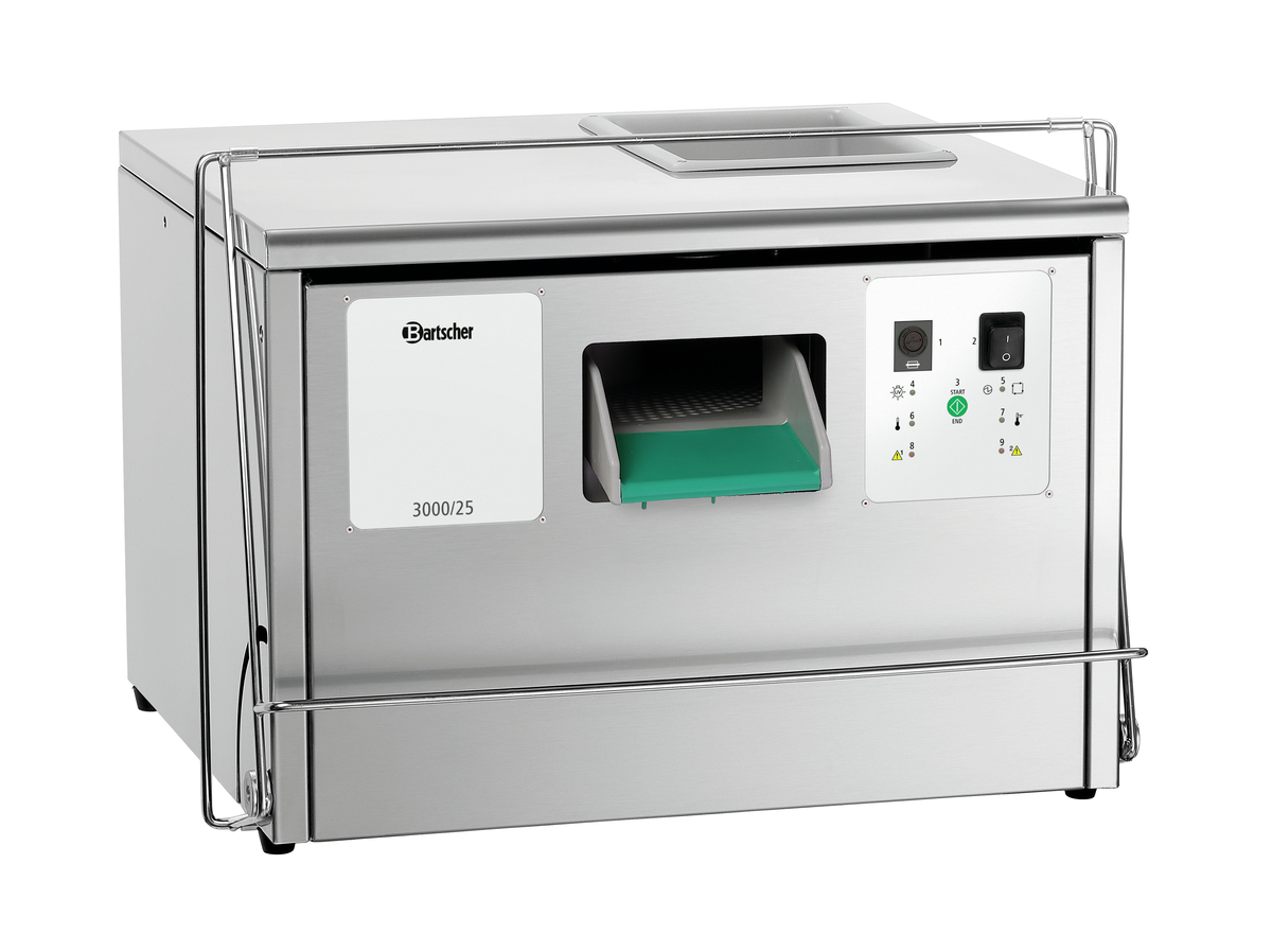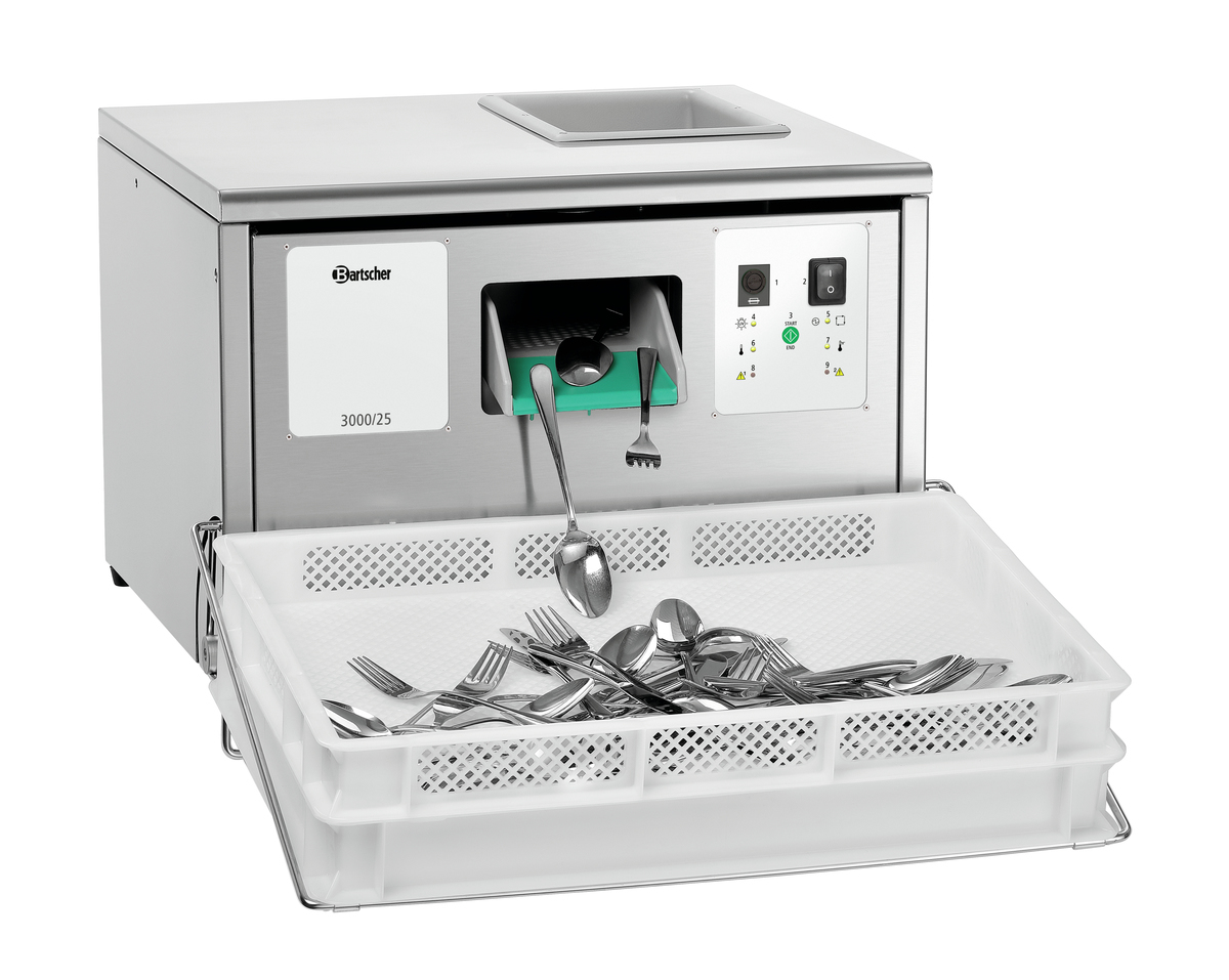 Le panier ne risque pas de bouger ou de glisser – avec le support pour panier à couverts, les couverts sont rangés au bon endroit : fraîchement polis dans le panier de la machine à polir les couverts 3000/25.