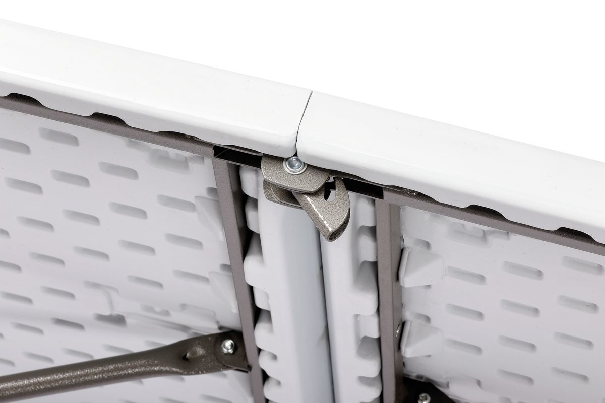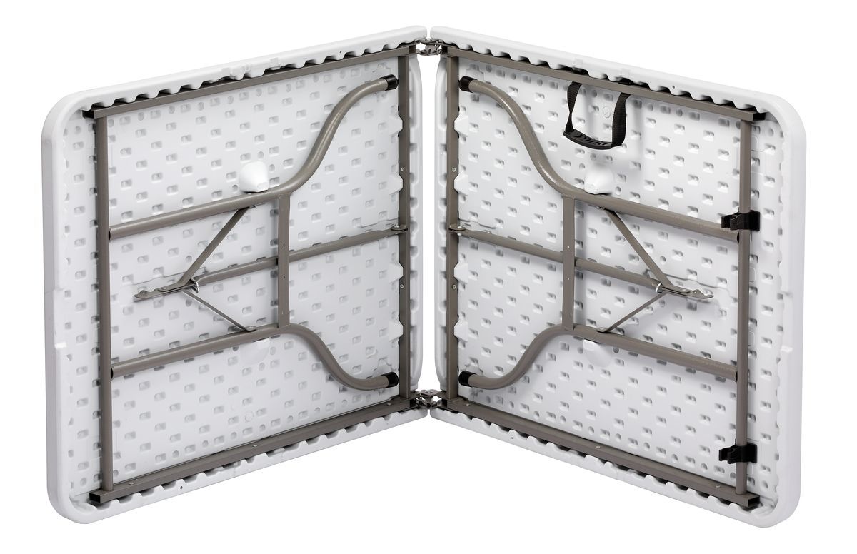 Cette table pliable solide avec surface robuste en plastique s’installe rapidement et permet de nombreuses utilisations grâce à sa légèreté et à ses dimensions compactes.