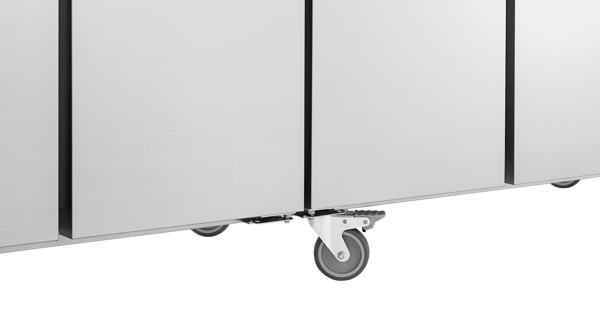 La table réfrigérée avec 4 portes garantit une température de réfrigération uniforme et constante dans tout l’espace intérieur grâce à la réfrigération par air pulsé. La surface robuste en acier inoxydable s’intègre parfaitement dans chaque cuisine et peut également être utilisée comme plan de travail pratique. Grâce à la Classe climatique 5, cette table réfrigérée convient également aux environnements particulièrement chauds.